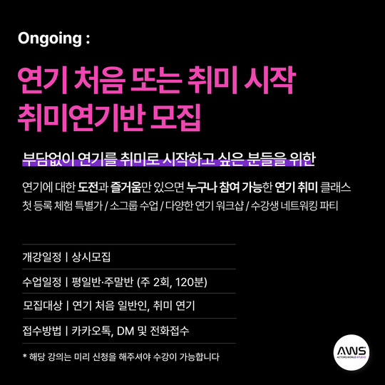 액터스월드스튜디오 상담센터 연락바랍니다.